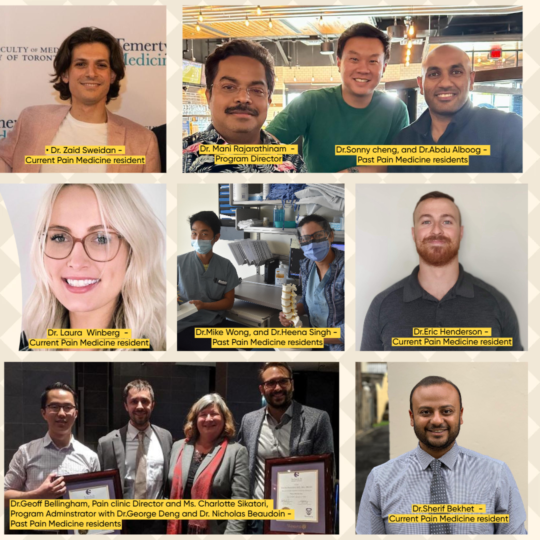Dr. Sonny Cheng, our inaugural CBD resident from July 2023, successfully fast-tracked his training and completed the program in October 2024. We are delighted that he has since joined our department as a Consultant. During his training, he co-authored a chapter on "Chronic Pain in HIV Pharmacotherapy 2nd edition." He also received the Fellow Teacher of the year award from the Anesthesia Department. Our current residents, Dr. Laura Winberg (Emergency Medicine, McMaster University) and Dr. Zaid Sweidan (Anesthesiology, University of Toronto), are progressing well and are preparing for their upcoming exams. We extend special congratulations to Dr. Winberg (formerly Dr. Laura Olejnik) on the recent publication of her article, "Pharmacologic Management of Acute Pain in Children: A Systematic Review and Network Meta-analysis," in JAMA Pediatrics. We are also excited to welcome our incoming residents for the new academic year: Dr. Eric Henderson, who completed his PM&R residency at the University of Alberta, and Dr. Sherif Bekhet from Western University. Dr. Bekhet will be undertaking an innovative overlapped training program, combining his Anesthesiology and Pain Medicine residencies.