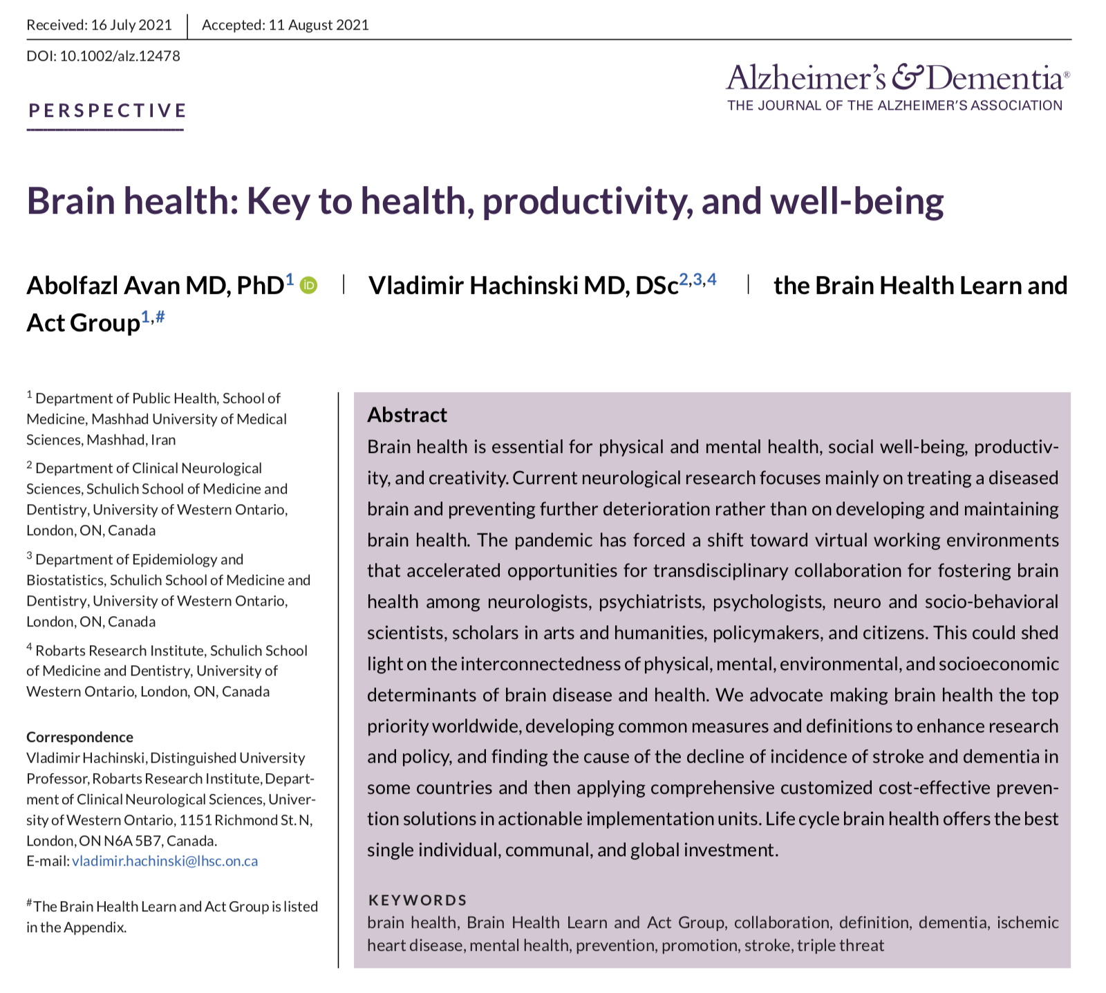 Brain Health: Key to health, productivity, and well-being