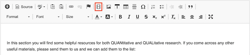 - Select the "embed media" icon within the WYSIWYG editor toolbar.