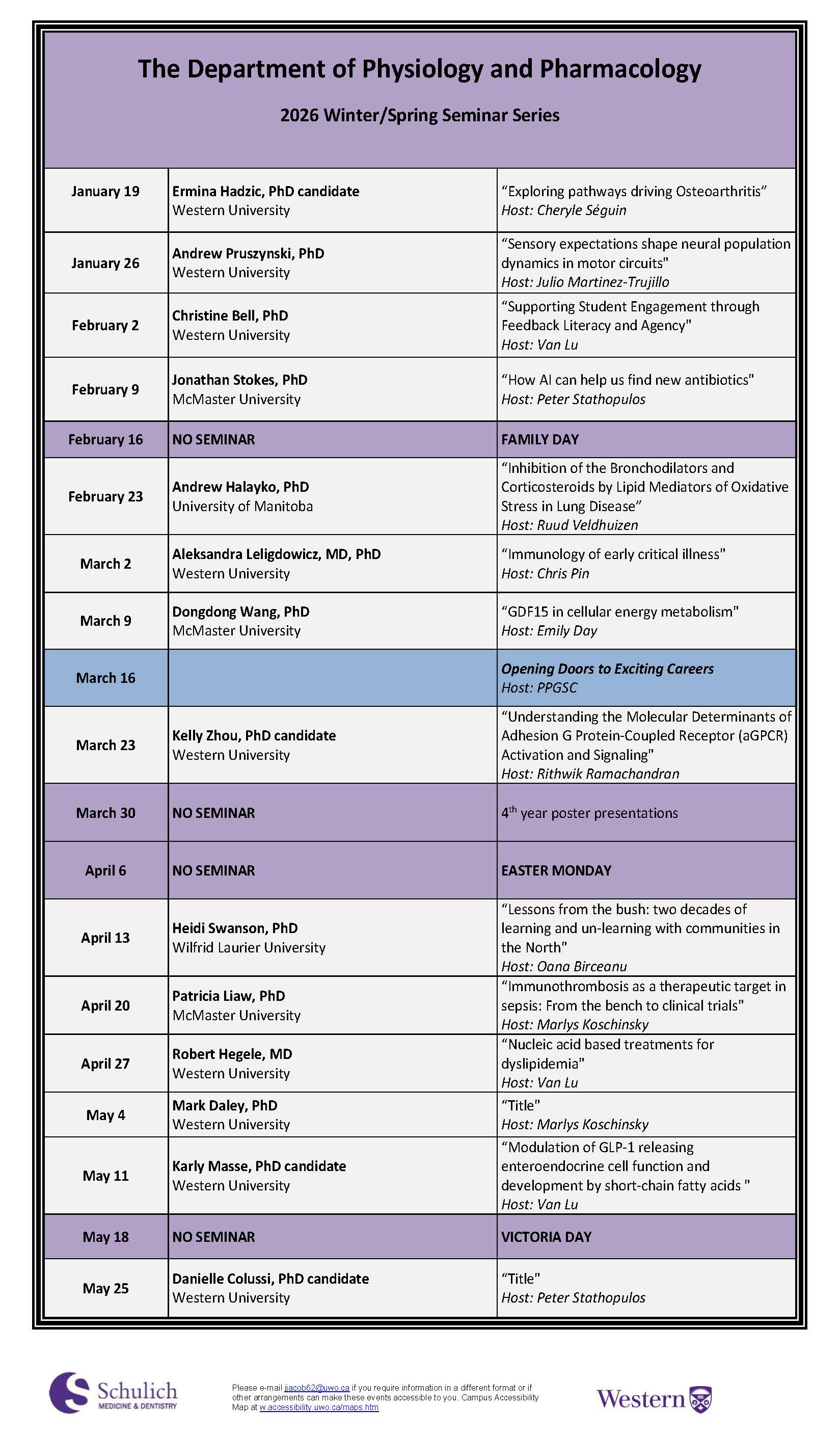 Come and explore research opportunities in the Department of Physiology and PharmacologyMonday, March 11 Seminar Series: Melissa Fenech, "Regulation of calcium homeostasis in the exocrine pancreas"