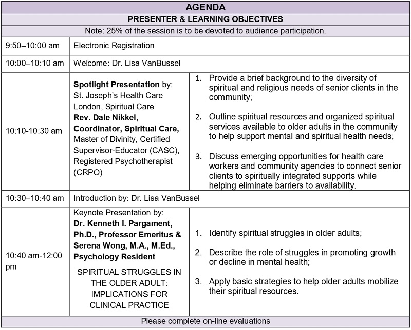 Dr. Kenneth I. Pargament, Ph.D., Professor Emeritus&Serena Wong, M.A., M.Ed., Psychology Resident"SPIRITUAL STRUGGLES IN THE ELDERLY: IMPLICATIONS FOR CLINICAL PRACTICE" |